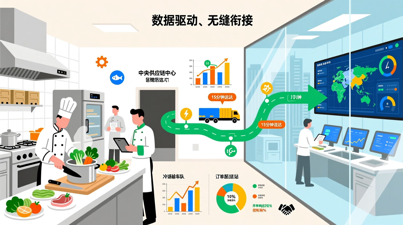 当前餐饮行业的竞争格局正在经历深刻变革,供应链系统的效率与韧性已成为决定企业生存与发展的关键变量。随着消费需求日益个性化、食品安全监管持续强化以及成本压力不断攀升,传统的供应链模式面临严峻挑战。构建敏捷、智能、可持续的新型供应链体系,不仅是提升运营效率、降低损耗的直接手段,更是企业实现差异化竞争、塑造核心优势的战略支点。 现状分析:多重压力下的供应链困境 餐饮供应链涵盖食材采购、仓储物流、加工配送、库存管理等多个环节,其复杂性远超一般零售行业。目前行业普遍存在三大痛点: 1. 信息孤岛现象严重:上游供应商、中央厨房、门店系统之间数据割裂,导致需求预测偏差率常超过30%,引发采购过剩或短缺。 2. 冷链物流成本高企:生鲜食材占餐饮成本结构的60%以上,但行业平均冷链覆盖率不足70%,腐损率高达15-20%,显著侵蚀利润空间。 3. 协同效率低下:某头部连锁餐饮企业调研显示,供应链各环节沟通耗时占运营总时长的34%,紧急订单处理周期长达72小时。 核心问题:系统性与结构性矛盾凸显 深入剖析供应链痛点,可发现三重深层矛盾: - 技术适配断层:75%的中型企业仍依赖ERP基础模块,缺乏AI预测、物联网监控等智能技术嵌入,难以应对突发性需求波动(如疫情期间某快餐品牌因缺货单日损失百万)。 - 标准化与个性化悖论:标准化食材采购保障效率却限制菜品创新,而定制化供应又导致采购碎片化。某新锐餐饮品牌因供应链柔性不足,新品上市周期被迫延长至同业2倍。 - 可持续性挑战:全球食品供应链碳排放占总量26%,但餐饮业绿色采购比例不足20%,面临日益严峻的ESG合规压力。 解决方案:四维创新重构供应链生态 1. 数字化基座建设 部署智能供应链中台系统,打通从农场到餐桌的全链路数据。某上市餐饮集团引入区块链溯源平台后,食材验收效率提升40%,质检成本下降25%。AI需求预测模型通过分析历史销售、天气、商圈活动等132项参数,将采购准确率提升至92%。 2.