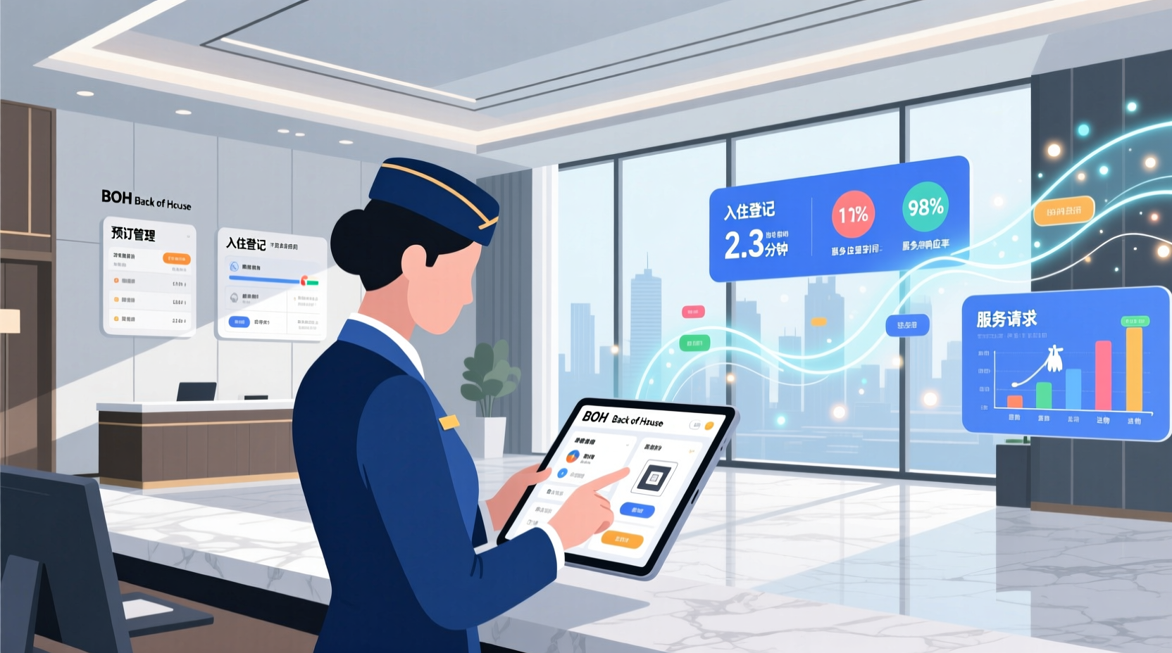 在竞争日益激烈的酒店行业,运营效率已成为决定企业盈利能力和客户满意度的关键因素。面对复杂的日常运营、多元化的客户需求以及精细化的成本控制要求,传统的管理方式已难以满足现代酒店高效运转的需求。BOH系统的出现,为酒店业提供了一种整合资源、优化流程、提升管理透明度的强大工具,其价值正被越来越多的行业管理者所认识和重视。 当前,酒店后台运营普遍面临流程分散、信息滞后、协调困难等挑战。预订信息、库存管理、员工排班、财务核算等环节常处于割裂状态,依赖人工传递数据不仅效率低下,且极易出错。部门间沟通壁垒导致资源调配不及时,影响客户体验。同时,管理层缺乏实时、全面的数据支撑决策,往往陷入经验主义或事后补救的被动局面。部分酒店虽已引入电子化工具,但多为单一功能模块,未能形成覆盖全流程的闭环管理系统。 深入剖析,制约酒店运营效率提升的核心问题集中在几个方面:首先是信息孤岛现象严重,前后台数据无法无缝对接,造成服务响应迟缓;其次是流程标准化不足,不同员工执行同一任务存在差异,服务质量不稳定;再次是人力资源配置粗放,无法精准匹配需求波动,导致人力成本浪费或服务缺口;最后是缺乏有效的数据分析能力,难以从海量运营数据中提炼价值,指导策略优化。这些问题相互交织,构成了酒店高效运营的结构性障碍。 针对上述痛点,BOH系统提供了系统性的解决方案。该系统通过集成预订管理、房态控制、库存管理、人力资源、财务核算等核心模块,构建统一的数据平台。实时房态可视化技术使前台与客房、工程部门协同效率倍增,房务清洁进度、维修状态一目了然,减少客户等待时间。智能排班系统基于历史入住数据预测人力需求,结合员工技能标签自动生成最优排班方案,显著降低人力成本。库存管理模块实现从采购到消耗的全链条追踪,设置智能预警阈值,避免物资短缺或过度囤积。强大的BI分析功能将运营数据转化为决策依据,帮助管理者识别效率瓶颈、预测营收趋势、优化定价策略。 实施BOH系统需分阶段推进:基础阶段完成各业务模块数字化改造,打破信息壁垒;整合阶段打通模块间数据流,实现流程自动化;优化阶段引入AI算法,逐步实现预测性维护、动态定价等智能决策。成功部署的关键在于顶层设计与管理变革同步:重新梳理并标准化核心流程,配套员工技能培训,建立数据驱动的考核机制。选择系统时需关注开放性与扩展性,确保能与PMS、POS等外部系统无缝集成,适应未来技术升级。