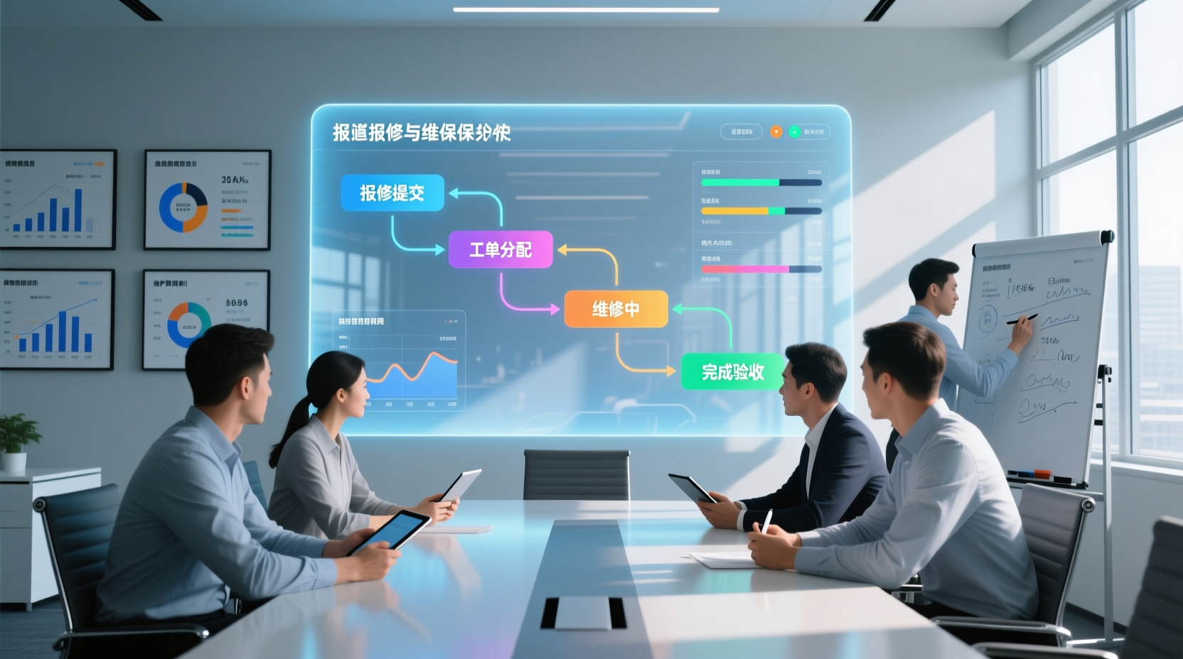 展望未来,报修与维保系统将向更智能、更融合、更前瞻的方向发展。AI深度赋能:机器学习算法将在故障根因分析、维修方案推荐、备件需求预测等方面发挥更大作用,逐步实现“自愈型”运维。物联网(IoT)融合:设备内置传感器数据将实时接入系统,实现运行状态远程监控、异常自动报警,推动运维模式从“事后维修”向“预测性维护”和“主动性维护”转变。增强现实(AR)应用普及:维修人员通过AR眼镜获取设备叠加信息、操作指引或远程专家实时指导,显著提升维修效率和技能水平。平台化与生态协同:系统将演变为连接内部用户、维修团队、设备供应商、第三方服务商的协同平台,优化资源配置,构建高效服务生态。管理理念升级:系统的深度应用将推动企业运维管理从经验驱动转向数据驱动,实现流程标准化、资源可视化、决策科学化,最终构建以客户和员工为中心的高效运维服务体系。